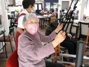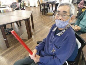道具を使った体操では、ゆっくり伸ばしたり、バランスをとったり。「むりなく動けるのがいいね」と笑顔も見られます😀