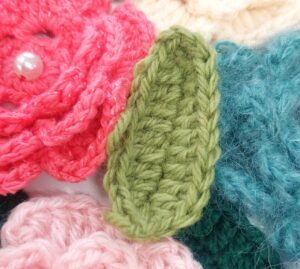 葉っぱの部分も毛糸でていねいに表現されていて、まるで花束のようです。