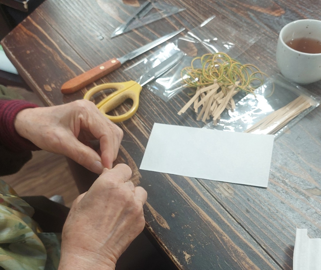 今回のお持ち帰りレクはしめ縄制作。 「こんなこと思いつくなんてすごいね!」と、アイデアに驚きの声があがります👀!細かい作業は、手先がとても器用なご利用者さまが担当してくださいました。その様子を見て、「いつも本当に器用だね […]